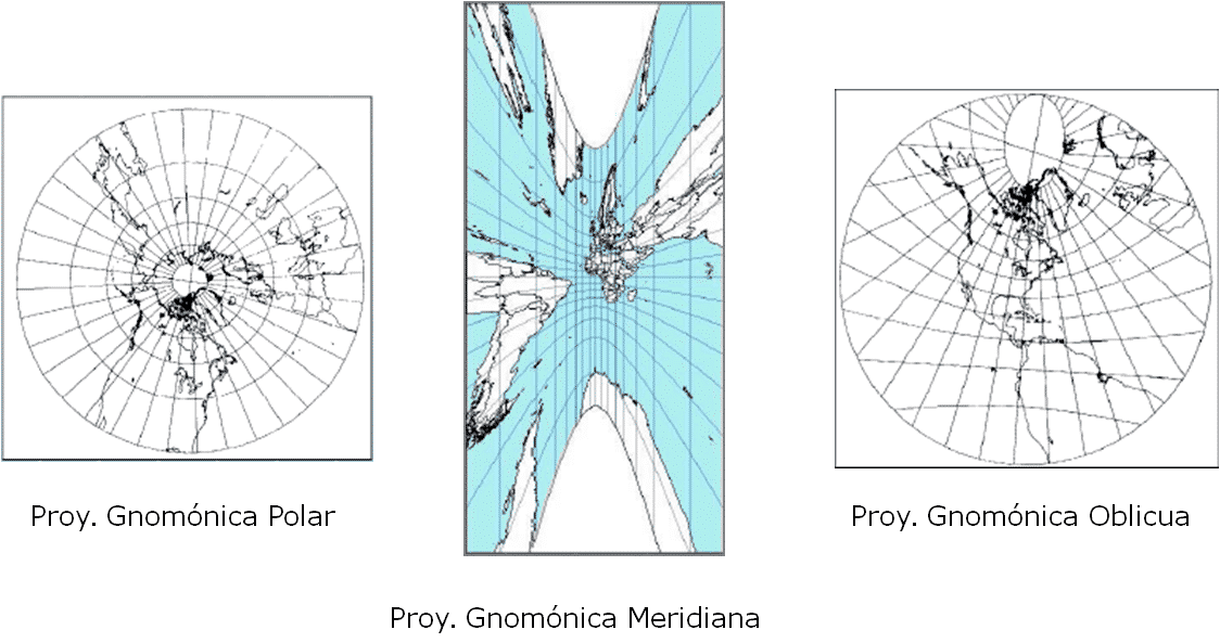 - Los círculos máximos de la superficie de referencia se proyectan como líneas rectas.